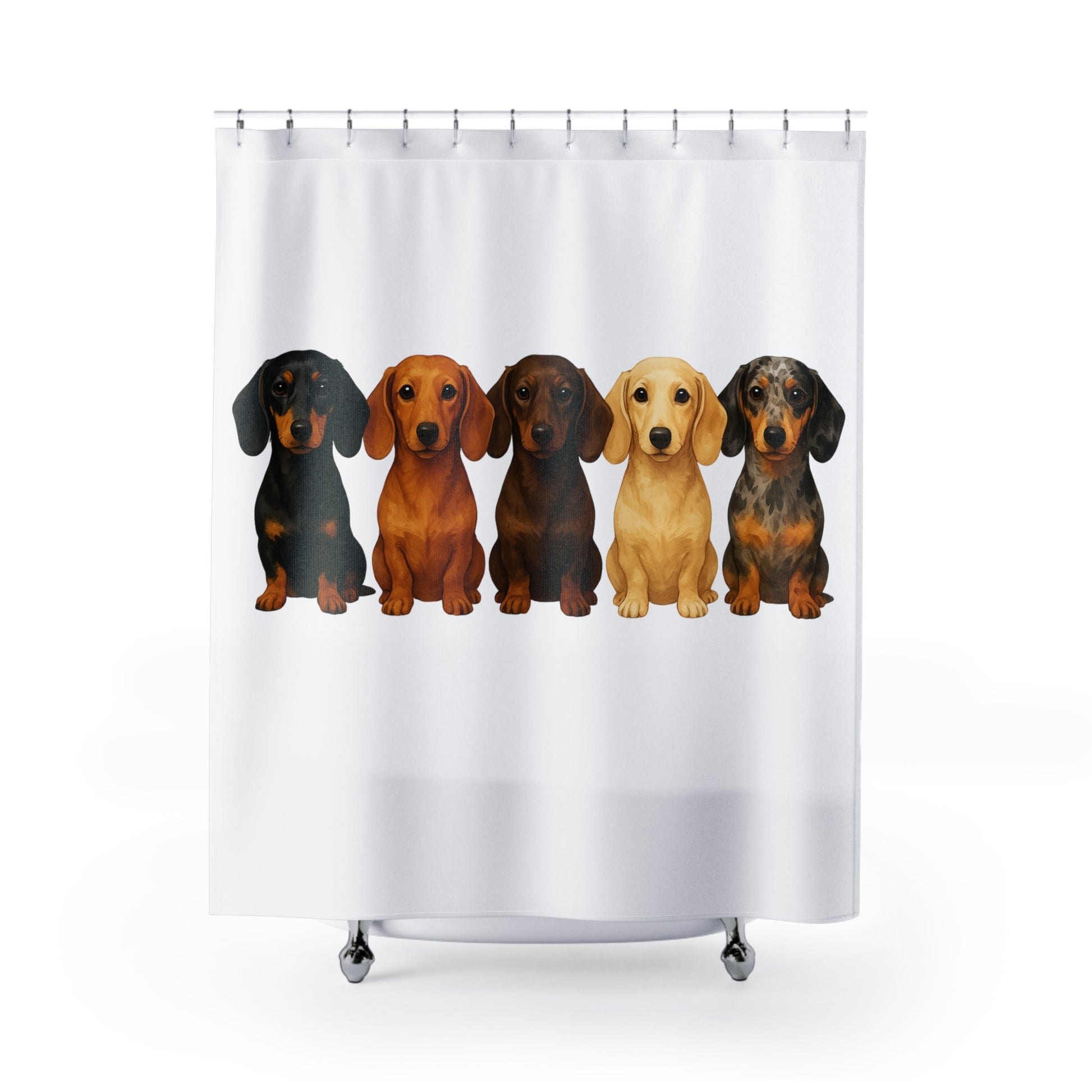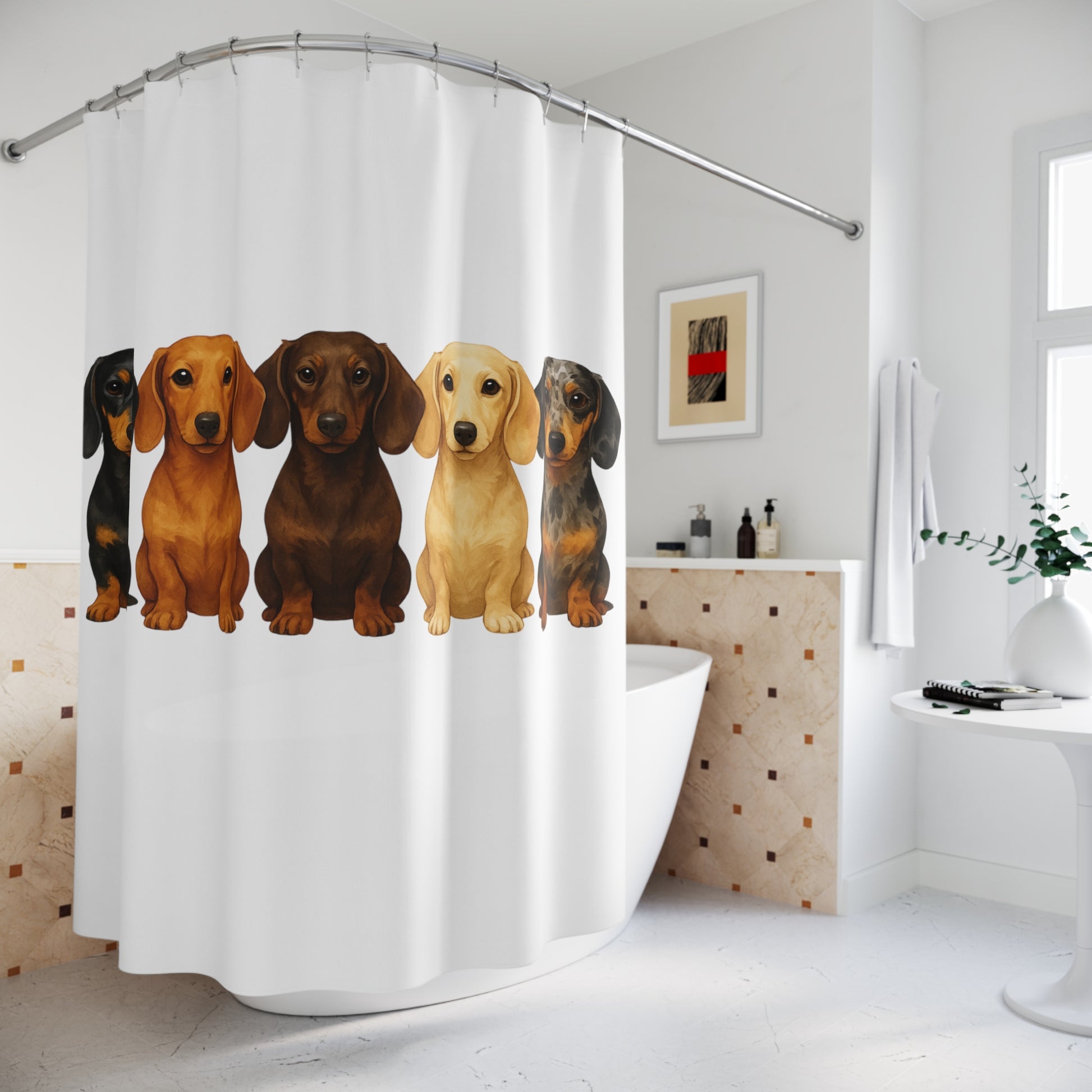 Transform your bathroom into a vibrant sanctuary with this delightful set of shower curtains. Adorned with charming illustrations of adorable dachshunds, this product brings a playful and warm atmosphere to your space. Perfect for dog lovers, families, or anyone looking to add a touch of whimsy to their home decor. Ideal for housewarming gifts or as a cheerful addition to your own home, it suits various occasions—from birthdays to holidays. This shower curtain not only protects your bathroom but also enhances your daily routine, making each shower feel special and inviting.